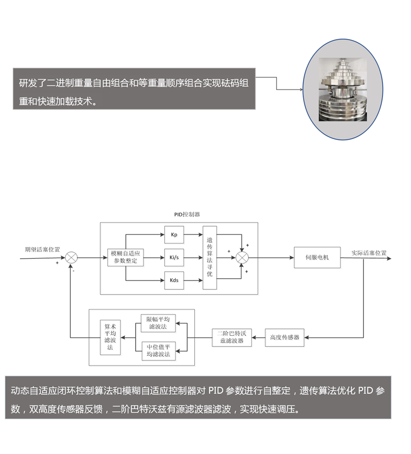 ①整數(shù)壓力點砝碼質(zhì)量全自動加載功能