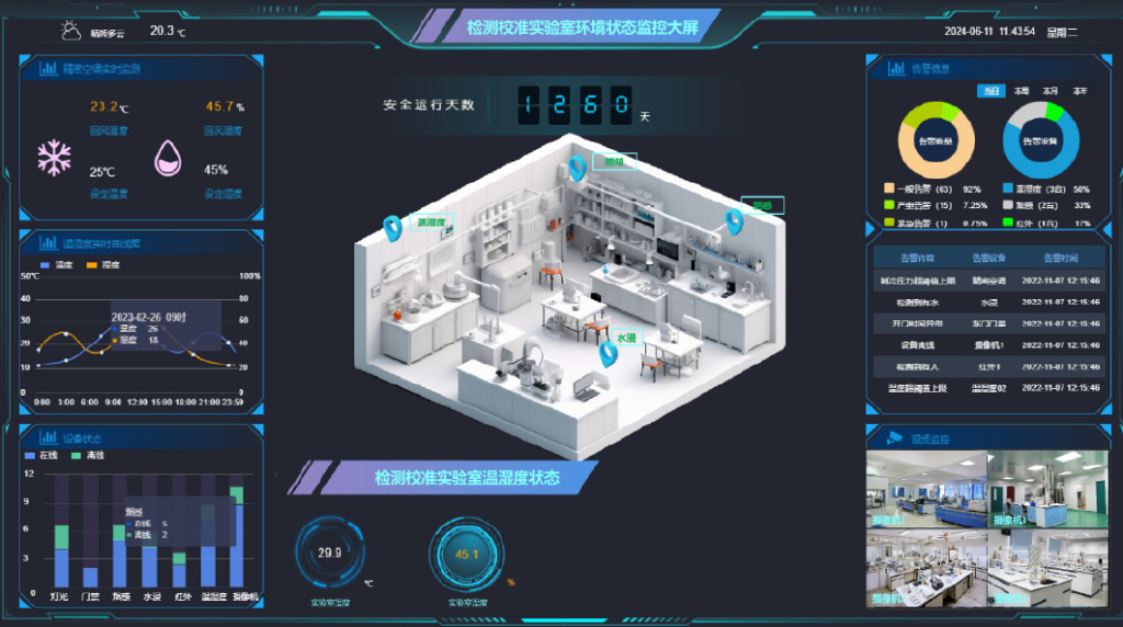 檢測(cè)校準(zhǔn)實(shí)驗(yàn)室環(huán)境狀態(tài)監(jiān)控系統(tǒng)可集成溫濕度、大氣壓、光照、粉塵、甲烷、氮?dú)?、二氧化碳、煙霧等多種監(jiān)測(cè)類型、同時(shí)支持接入第三方設(shè)備。