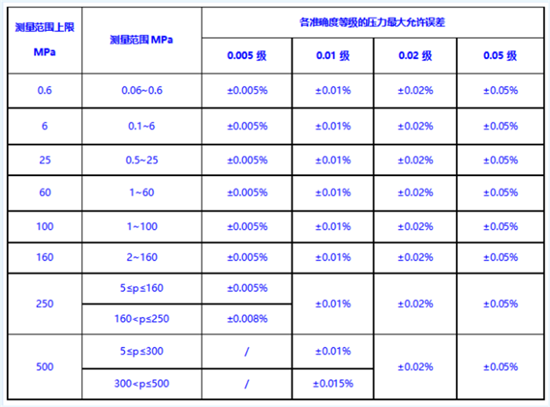 重新規(guī)定測(cè)量范圍和準(zhǔn)確度等級(jí),將高壓活塞壓力計(jì)的最大允許誤差分段。