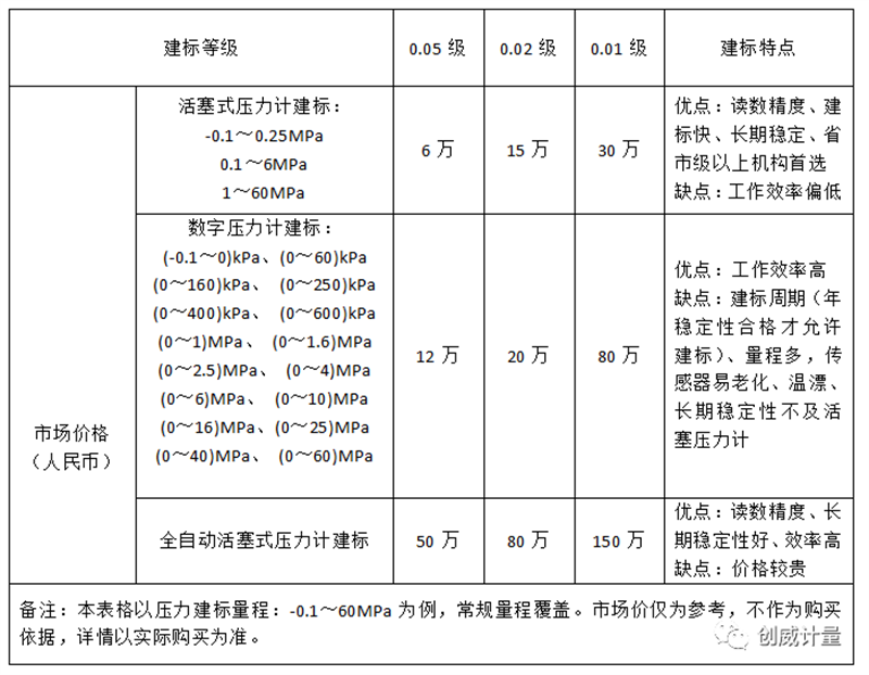 但壓力標準器的升級,是一筆不菲的投入,以表格說明: