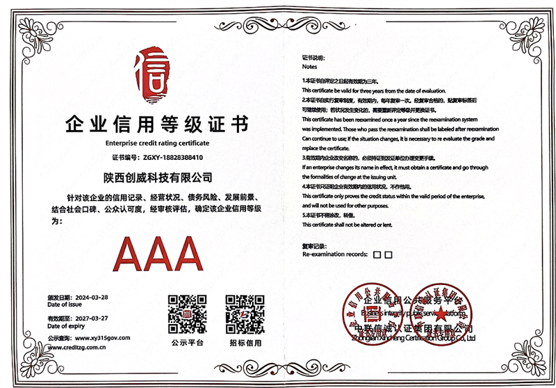 2024-05-14陜西創(chuàng)威科技有限公司榮獲3A信用等級證書